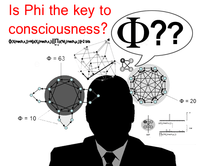 • Given that Phi should be a generic measurement applicable to any data processing system, Tononi compares the brain to other mechanical devices that process information. The ability of the brain to cross-reference and cross-talk so many of its information flows in a recursive fashion gives it a very high "Phi", distinguishing it from devices that use information from Tononi proposes that consciousness equates to the degree to which an interactive system integrates and recursively processes tremendous amounts and varieties of environmental inputs and stored information one source (say a temperature sensor) to do but one function (e.g. turn on or off the furnace) without any feedback mechanisms that allow reconsideration of the most recent outputs. For humans, by contrast, the information that our skin temperature sensors send to the brain is intermixed and cross-referenced in myriad ways with other information flowing into and through the body/brain system (e.g. from the eyes, nose, ears, muscles, memory areas, etc.), and processed in a recursive fashion; the overall outputs tell our body mechanisms to make adjustments, informs our executive center on what sort of clothes to use, defines our feelings of comfort or discomfort, and sets our moods and high-level outlook about our lives. And all of these conclusions are then re-inputted and thus re-considered for updating as new information comes in from our skin and other senses (along with internal memories being drawn upon).